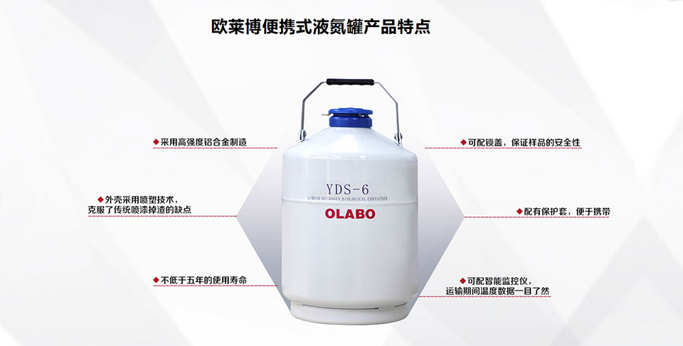 歐萊博YDS-6手提式液氮罐在生物、醫學、畜牧等都有很大用途, 廣泛用于畜牧業良種家畜精液冷凍貯存;醫療衛生行業的人體器官、皮膚、血液、細胞的低溫保存,生物工程、工業冷裝配、金屬材料冷處理、低溫粉碎及超導等廣大領域。