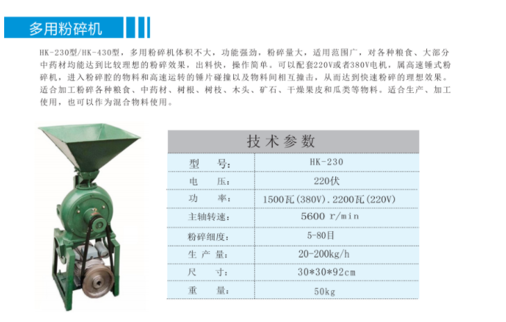HK-230多用粉碎機體積不大,功能強勁,粉碎量大,適用范圍光