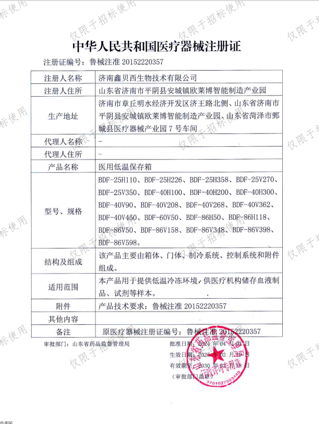 所屬類目:屬于醫療器械產品 II類 6858 醫用冷療、低溫、冷藏設備及器具批準文號:魯械注準20152220357